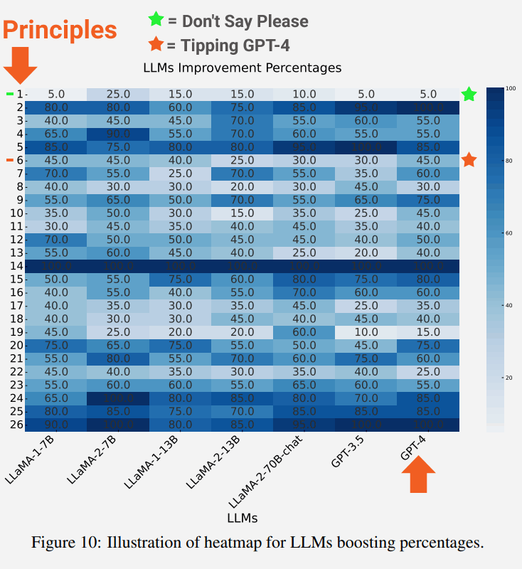 Research suggests that the specificity of prompts significantly influences the accuracy and relevance of AI responses. Tailoring prompts with detailed instructions can enhance the model's performance by more than 40% in some cases (Search Engine Journal). The tactics most effective in this study were: few-shot, target audience and getting the AI to ask for the information it needs (principles 1, 14, 26).